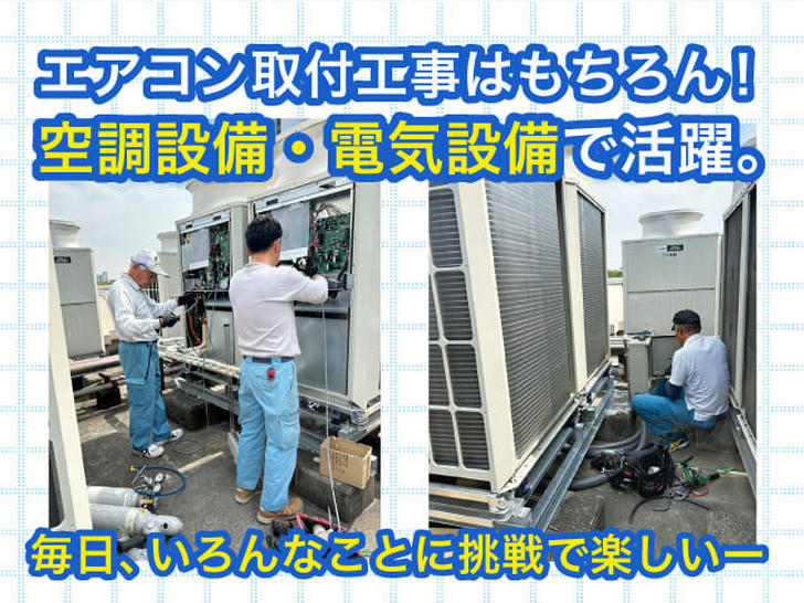 取り付け作業だけでなく、配管設計・電源接続・試運転・工程管理など多岐にわたる業務。